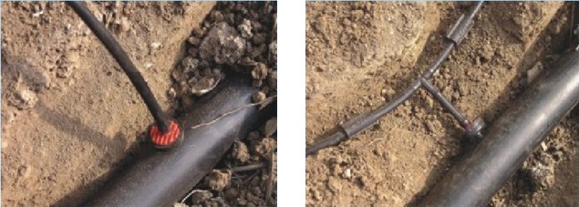 4.可配用“分流管”使毛管的单一出水点分散到果树四周使根系均匀灌溉,并可直接埋设于地下,不影响耕作。