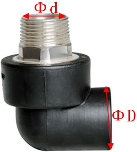 其中“ΦD”表示管件公称外径,“Φd”表示管件丝口直径,1.6MPa=16公斤