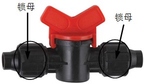 产品介绍:锁母直通阀是一种常用的滴灌配件,主要用于连接两条滴灌带,对阀门后段水流量的控制。