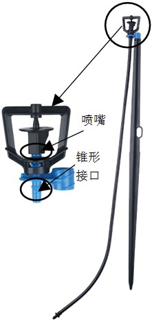 ※此种产品组合包括折射喷头、插杆、毛管、双倒钩接头,产品已组合完毕,客户购买后可直接投入使用。